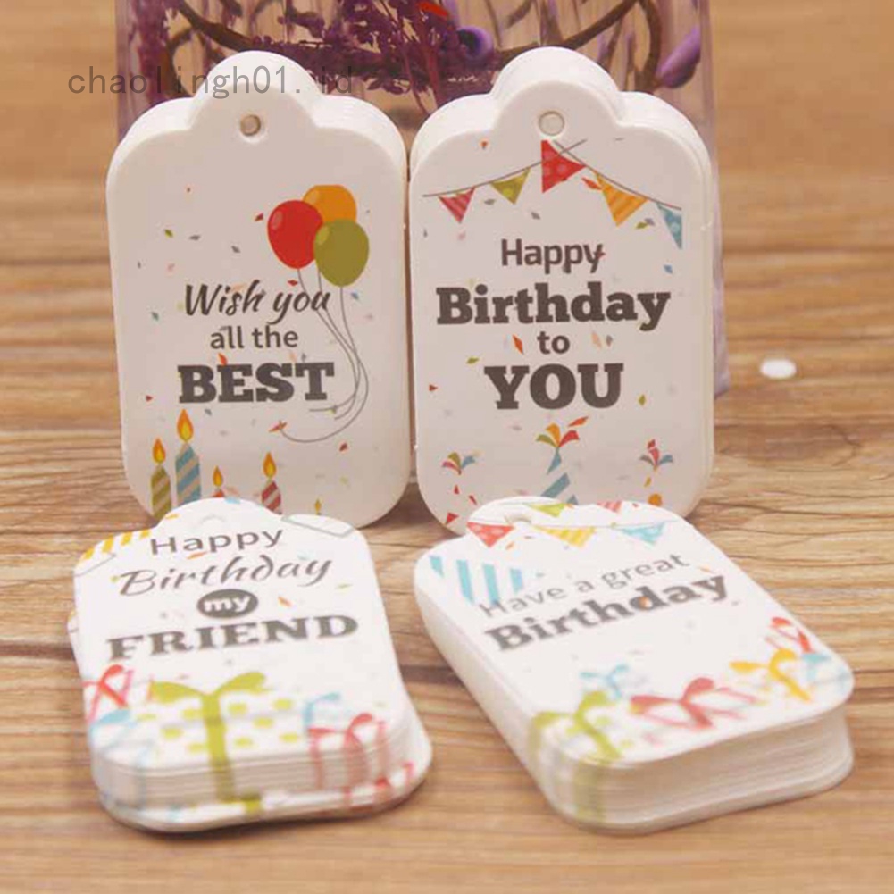 100 Sheets Set European Style White Cardboard Birthday Gift Tag Card Colorful Print Diy Craft Shopee Indonesia