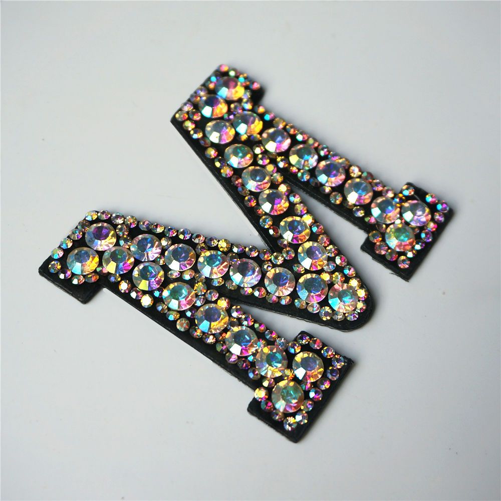 2020 M Letters Rhinestones Alphabet Sew Iron On Patches Rainbow